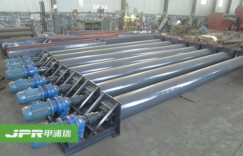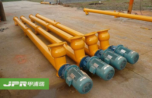 螺旋輸送機工作時,由于物料的重力及其與槽體壁所產生的摩擦力,使物料只能在葉片的推送下沿著輸送機的槽底向前移動,其情況好像不能旋轉的螺母沿著旋轉的螺桿作平移運動一樣。物料在中間軸承的運移,則是依靠后面前進著的物料的推力。所以,物料在輸送機中的運送,完全是一種滑移運動。為了使螺旋軸處于較為有利的受拉狀態,一般都將驅動裝置和卸料口安放在輸送機的同一端,而把進料口盡量放在另一端的尾部附近。 旋轉的螺旋葉片將物料推移而進行輸送,使物料不與螺旋輸送機葉片一起旋轉的力是物料自身重量和螺旋輸送機機殼對物料的摩擦阻力。葉片的面型根據輸送物料的不同有實體面型、帶式面型、葉片面型等型式。螺旋輸送機的螺旋軸在物料運動方向的終端有止推軸承以隨物料給螺旋的軸向反力,在機長較長時,應加中間吊掛軸承。