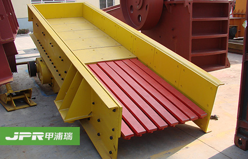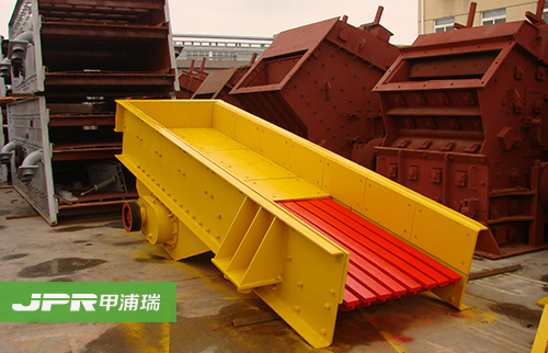 振動給料機在砂石生產(chǎn)線中可為破碎機連續(xù)均勻地喂料避免破碎機受料口的堵塞。振動給料機機是利用振動器中的偏心塊旋轉(zhuǎn)產(chǎn)生離心力,使篩廂、振動器等可動部分作強制的連續(xù)的圓或近似圓的運動。物料則隨篩廂在傾斜的篩面上作連續(xù)的拋擲運動,并連續(xù)均勻地將物料送至受料口內(nèi)。